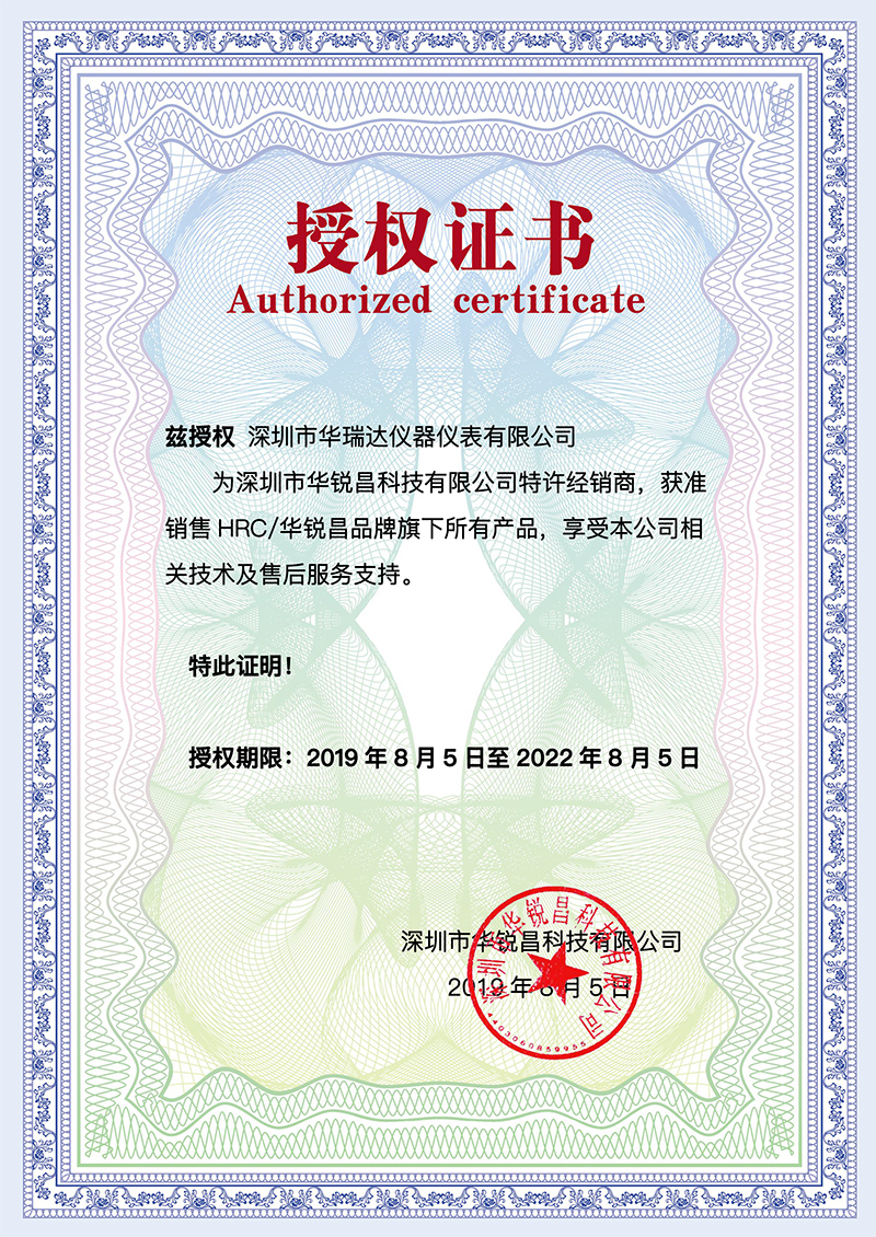 深圳市華銳昌科技有限公司建立了戰略合作伙伴關系,深圳市華瑞達儀器儀表有限公司成為深圳市華銳昌科技有限公司的特許經銷商,獲準銷售HRC/華銳昌品牌旗下所有產品,享受本公司相關技術及售后服務支持。