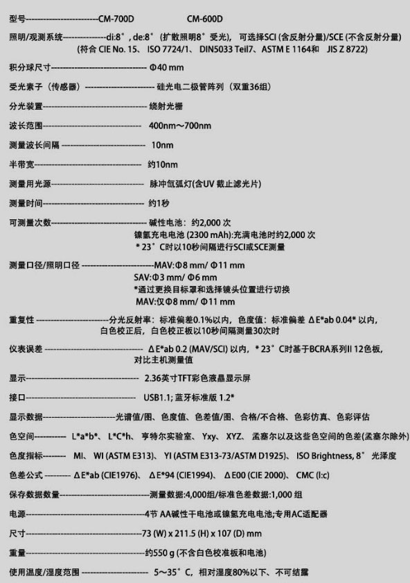 CM-700d/600d:結(jié)構(gòu)緊湊、輕巧便攜的分光測色計,配有無線藍(lán)牙通訊功能及彩色LCD顯示,給您提供完美的簡便及可操作性!